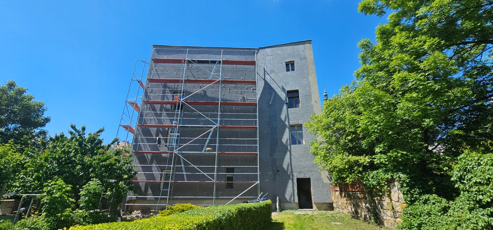 Trwają roboty budowlane w budynku przy ul. Garbarskiej 26 w Świdnicy. Budynek został ocieplony.