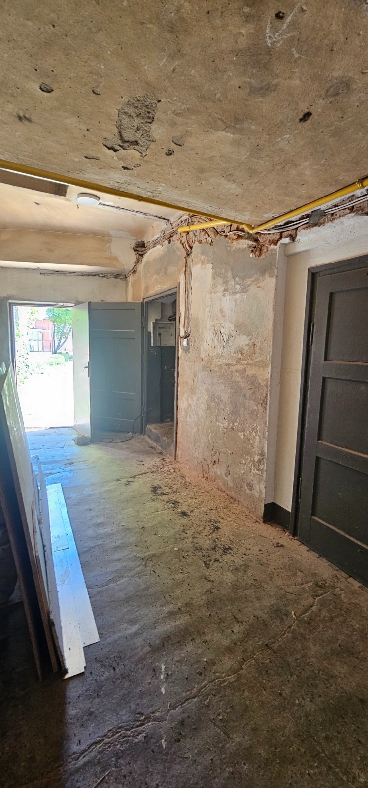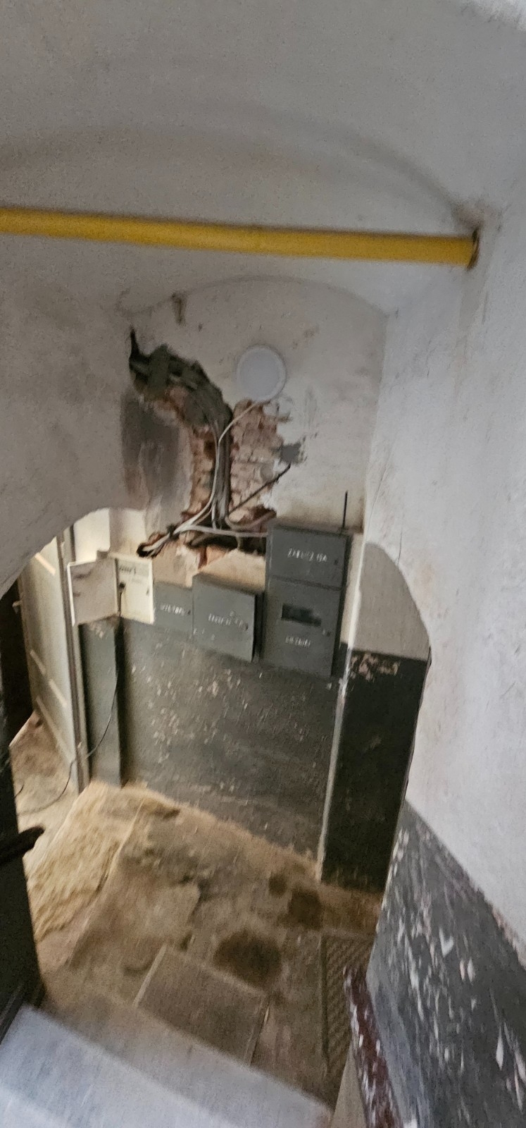 W toku wymiana instalacji elektrycznej na klatce schodowej.