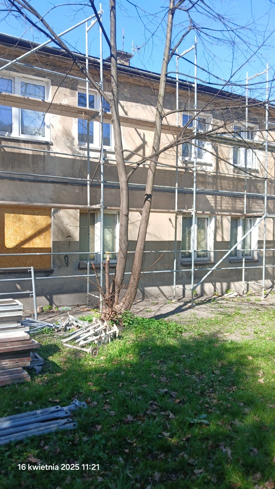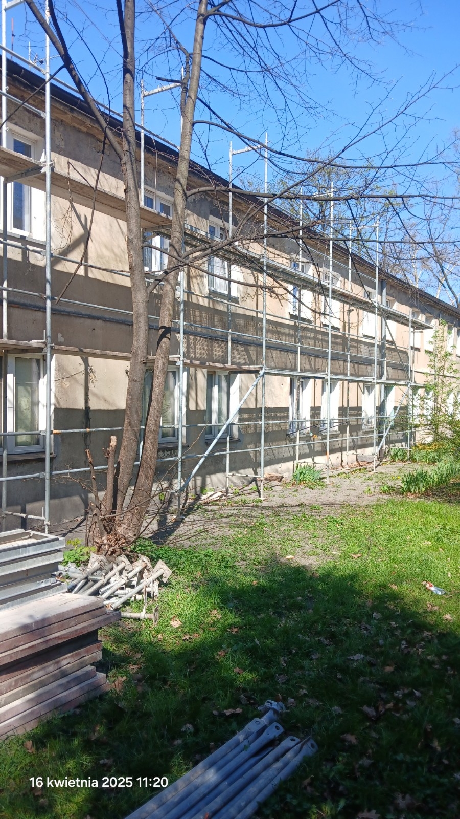 Ustawione zostały rusztowania do wykonania remontu elewacji.