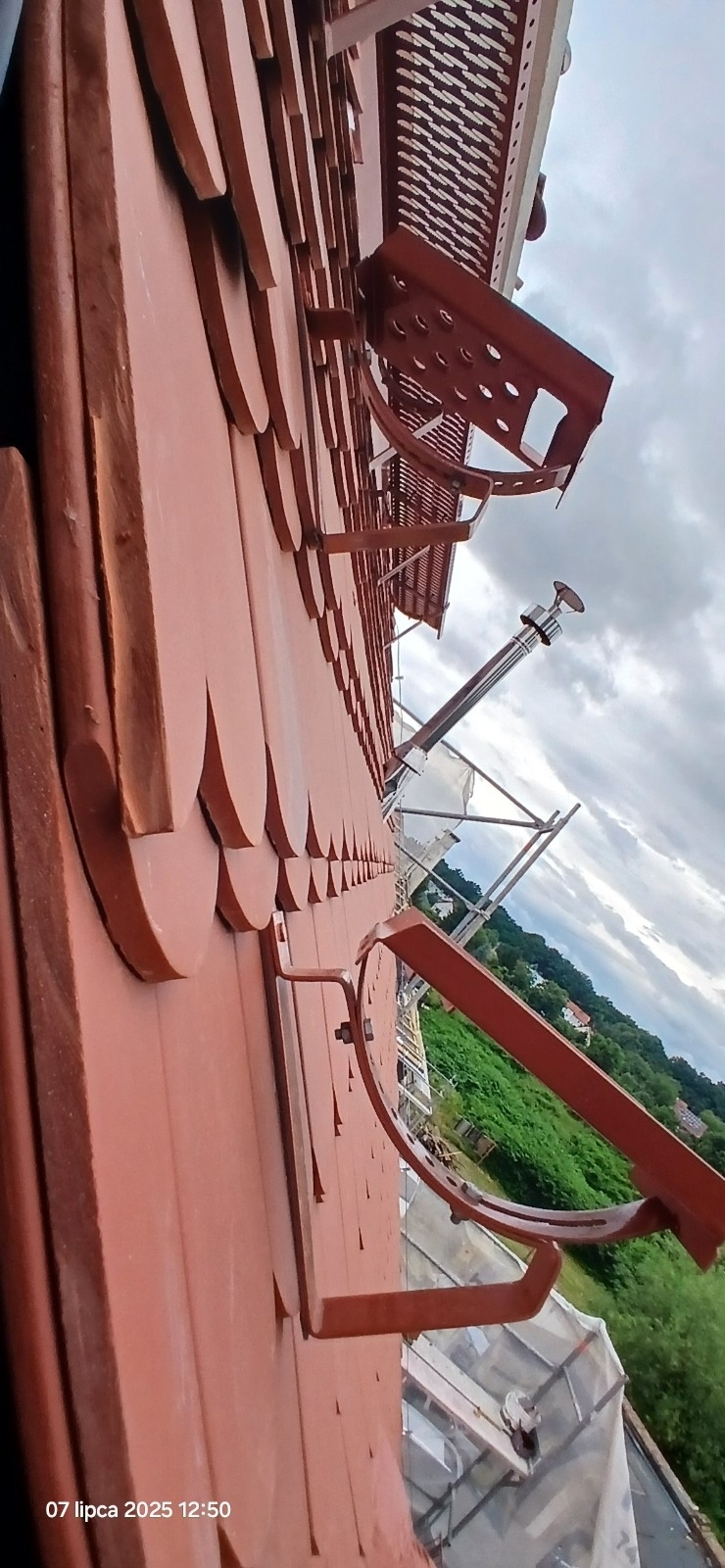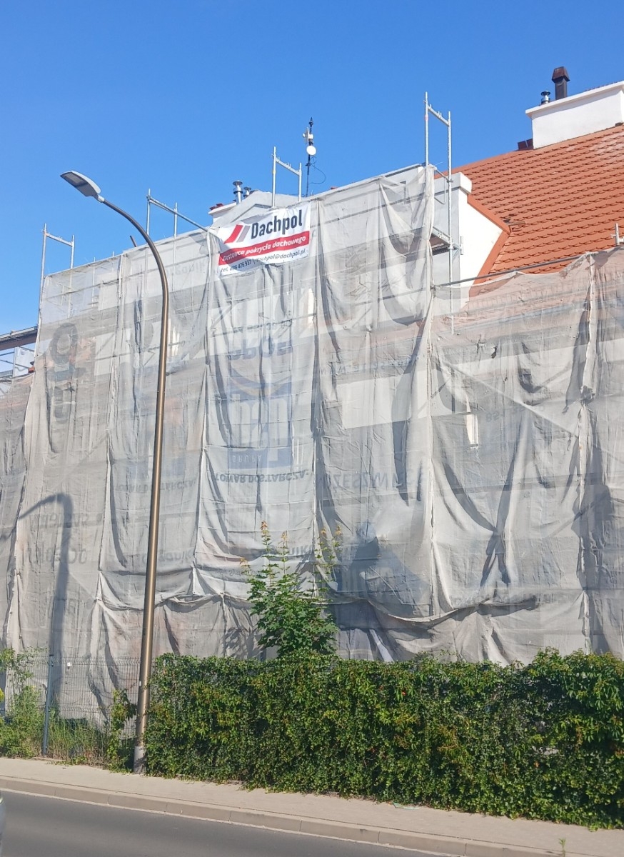 W ramach robót termomodernizacyjnych w budynku przy ul. Kraszowickiej 32 w Świdnicy obecnie trwa montaż akcesoriów dachowych: ławy kominiarskie, płotki przeciwśniegowe.
