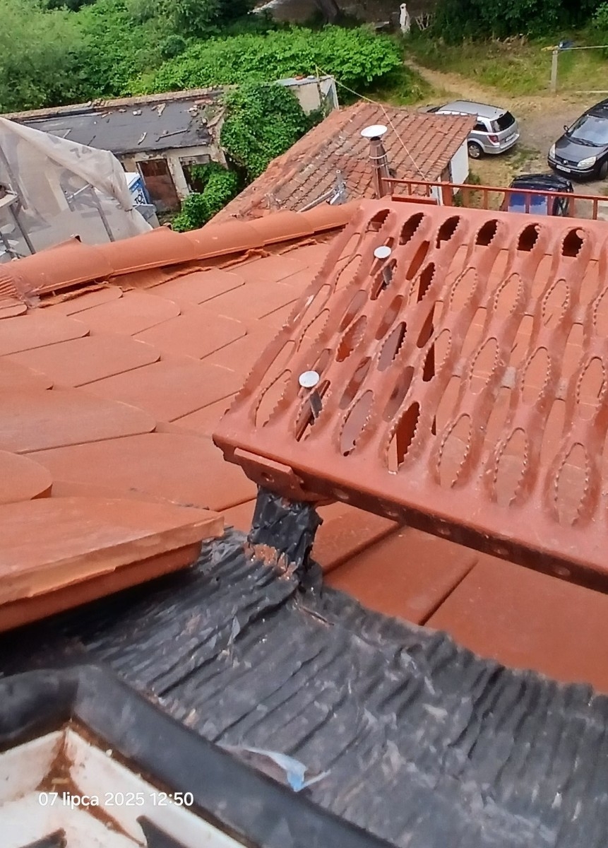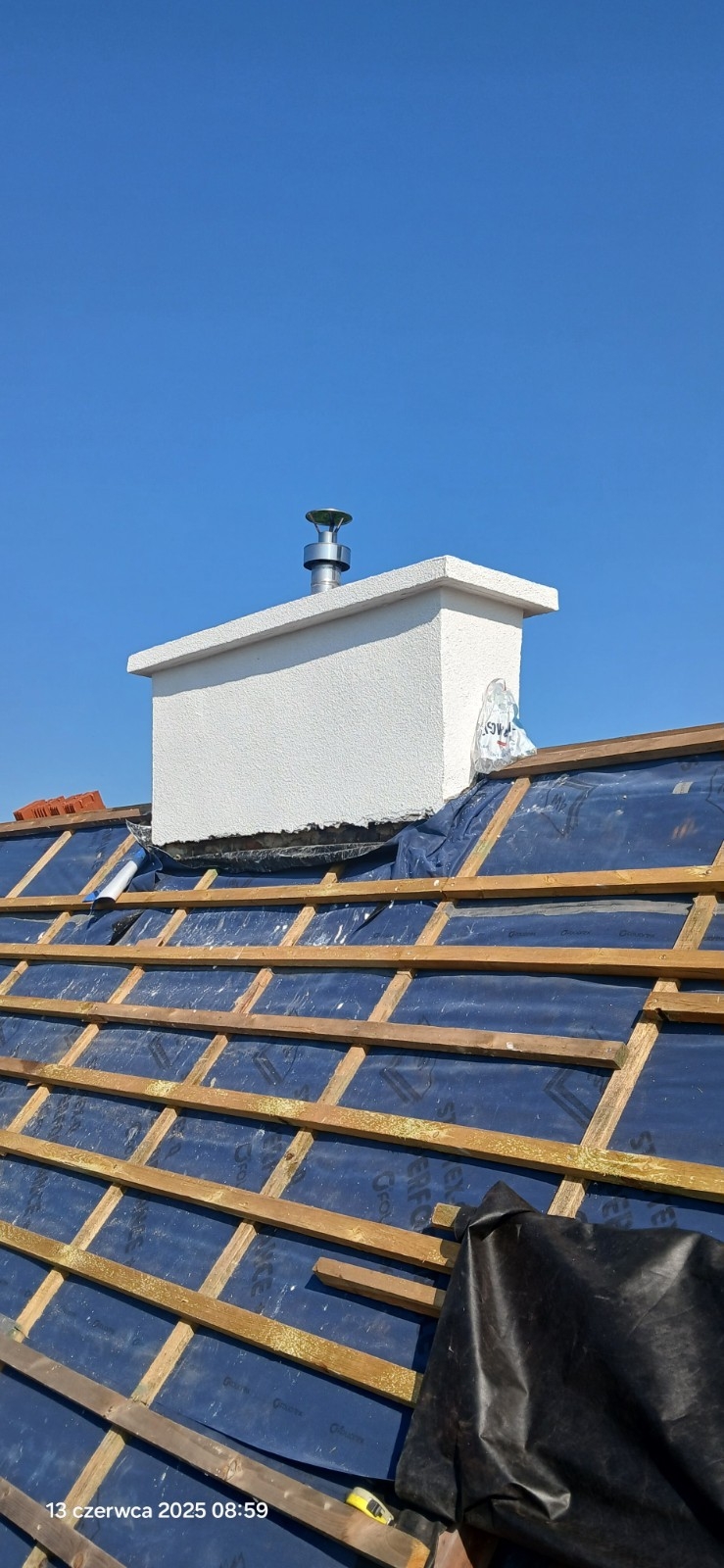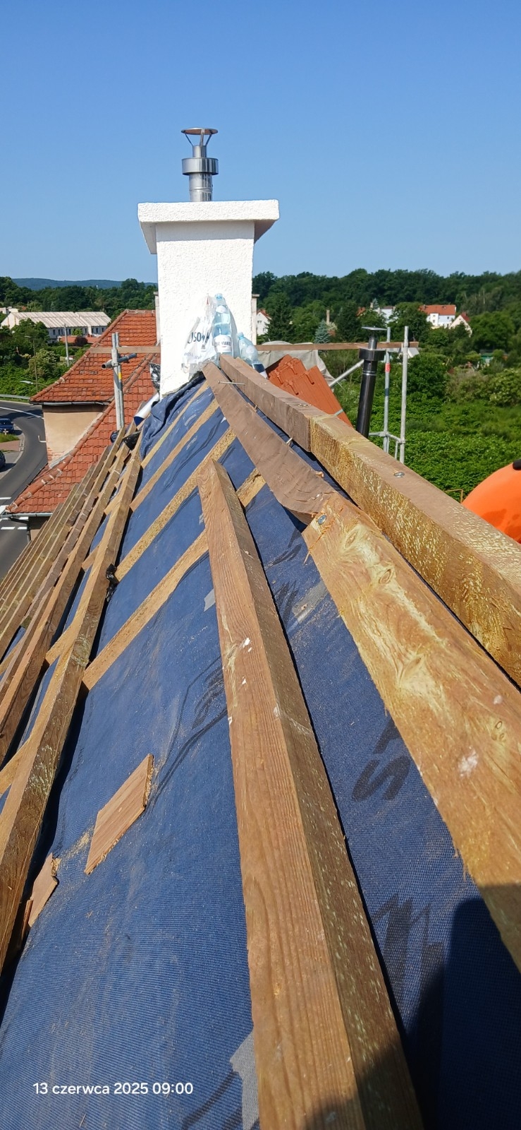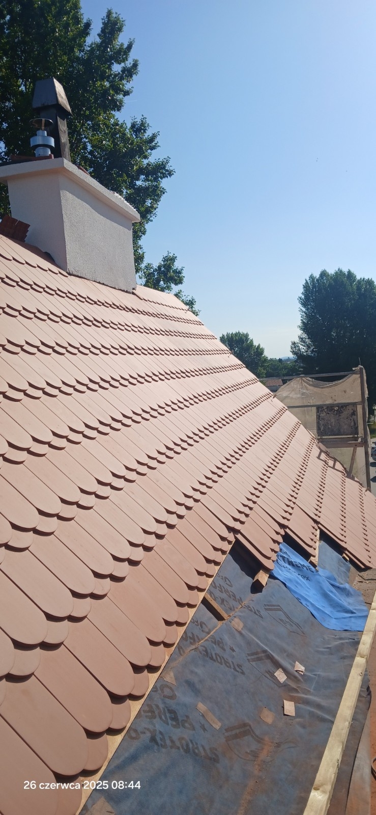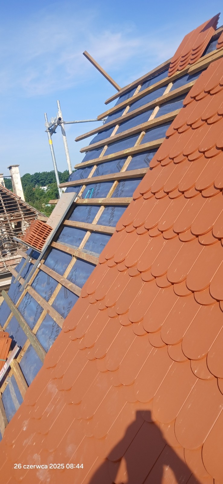 Montowana jest dachówka karpiówka do nowego łacenia dachu.