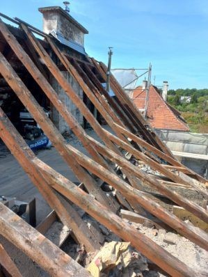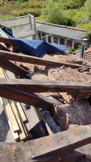 Trwają prace związane z remontem budynku przy ul. Kraszowickiej 32 w Świdnicy. Wykonano rozbiórkę pokrycia dachowego, łat i starej izolacji.