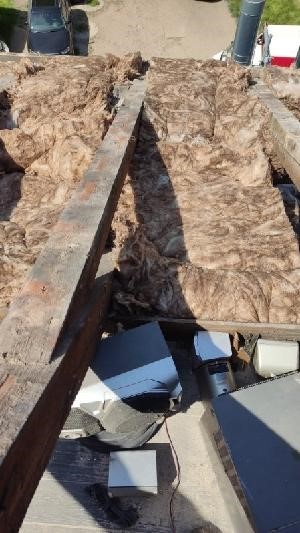 Ponadto rozebrano stare pokrycie z dachówki, wykonano izolację wełną mineralną, wymieniono łaty wraz z membraną dachową.