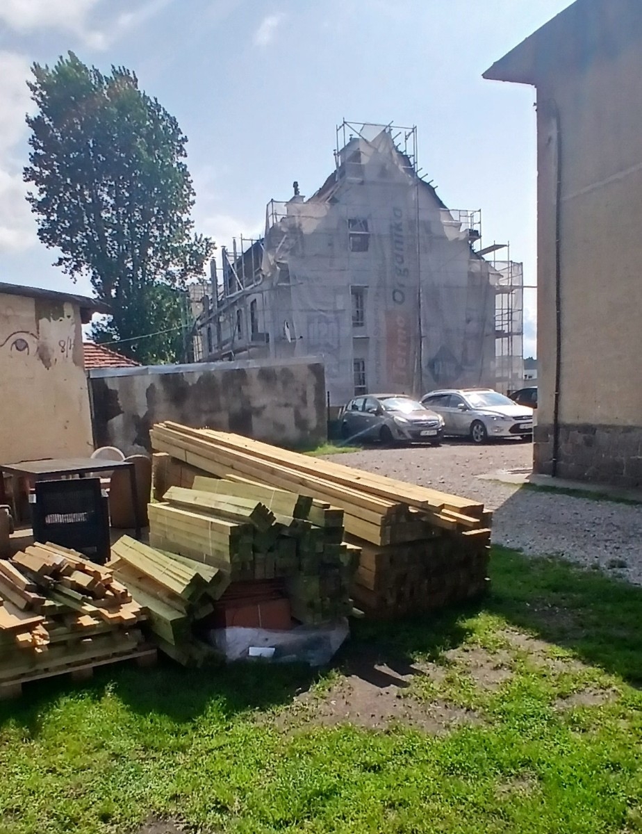 Rozpoczęły się prace przygotowawcze do remontu budynku przy ul. Kraszowickiej 34 w Świdnicy. Przywieziono część materiałów na plac budowy.