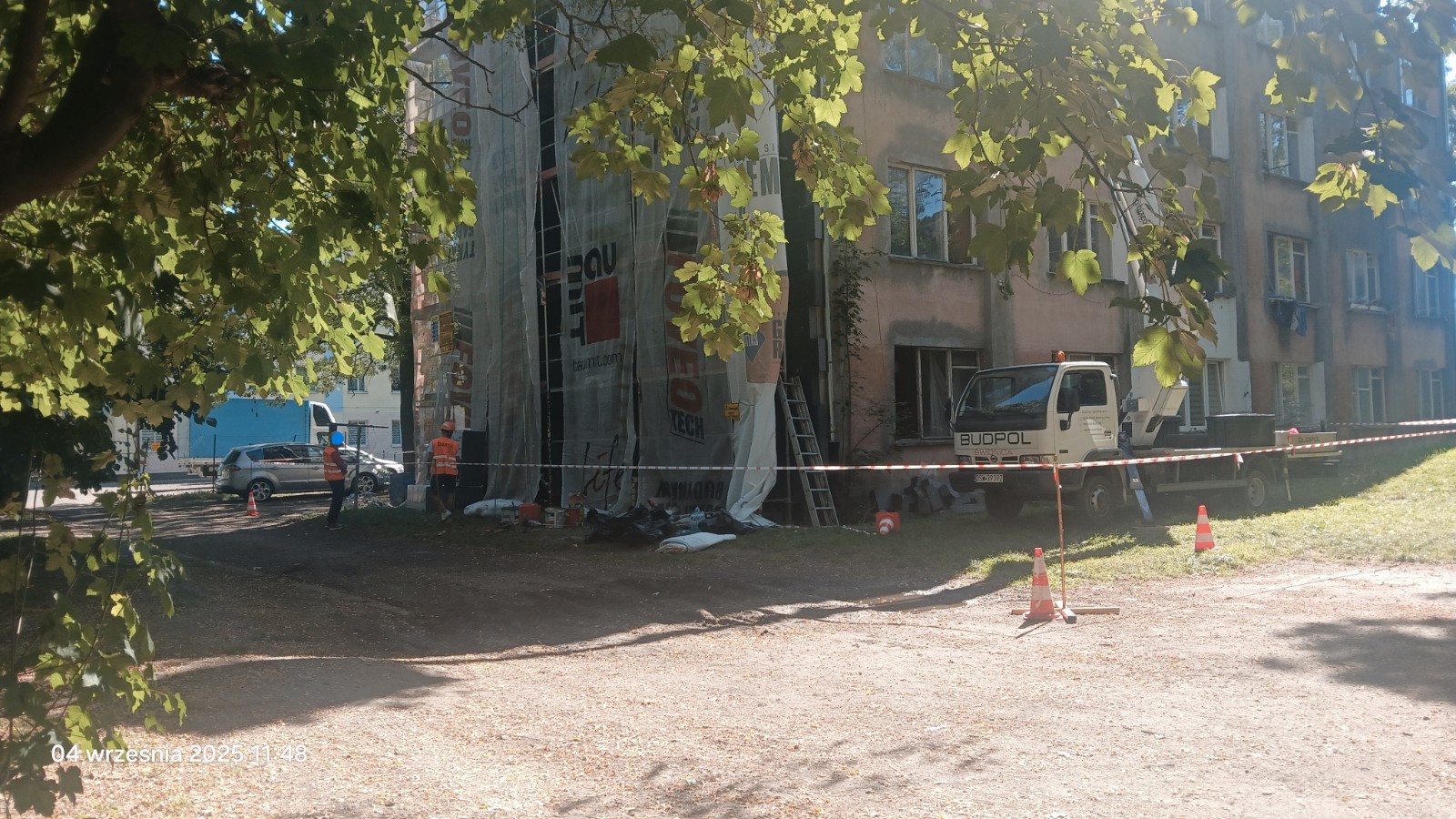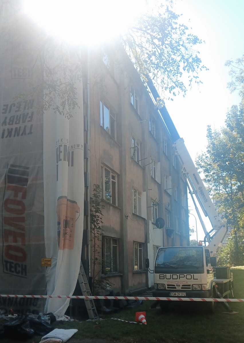 Rusza remont budynku przy ul. Kopernika 3 w Świdnicy. Rusztowania zostały już częściowo ustawione. Ściana szczytowa jest już docieplona styropianem.