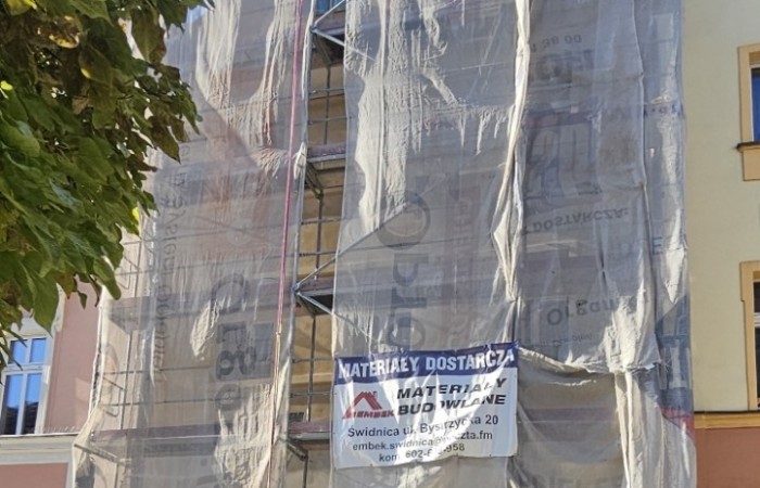 WM Łukowa 14 - elewacja frontowa w trakcie remontu